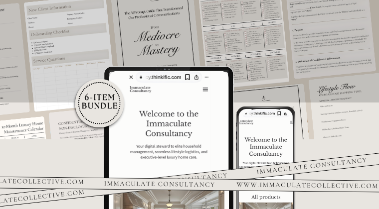 A complete starter bundle of contracts, workflows, trackers, planning tools, and AI prompts designed to help concierge professionals operate with structure, consistency, and credibility from day one.