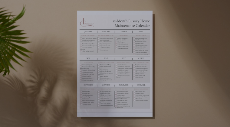 Stay ahead of every seasonal task with our comprehensive 12-Month Luxury Home Maintenance Calendar. Designed for elite residences, it provides month-by-month guidance for indoor and outdoor upkeep, from HVAC checks and surface care, to landscaping, seasonal décor transitions, and preventative inspections. This digital tool helps homeowners and estate teams streamline routines, protect high-end finishes, and ensure every detail is managed with precision. Turn maintenance into a proactive, organized process and keep your home operating at its absolute best year-round.